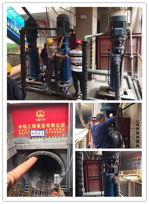 鄭州市軌道交通五號線建設項目,自2016年8月3日,采購我司立式多級泵組型號80DL54-20*10,數量3套,水泵流量54立方/小時,揚程200米,配套功率55KW,擔負盾構機主供水設備。